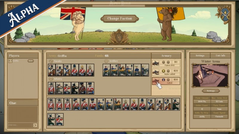 Игра использует систему одновременных ходов. Сначала игрок и его соперник раздают приказы своим войскам, а затем происходит развитие событий. Это вынуждает анализировать прошлые действия противника и предугадывать его следующий шаг. Победы тут достигаются исключительно военным путем. Сражаться можно как с ботами, так и с живыми пользователями. Есть разные настройки для матчей и таблица лидеров. В награду за сокрушение вражеской армии открывается доступ к косметическим предметам. Можно детально кастомизировать униформу своего войска. Тут даже позволяют подбирать пуговицы к мундирам.
