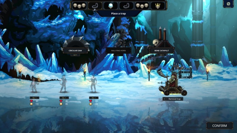 Игровой же процесс состоит из нескольких этапов, если условно. Первый и самый главный этап, это защита подземелья с видом сверху. На этом этапе вам придется расставлять ловушки, устраивать диверсии, устанавливать различие приманки, и даже расставлять монстров, которых вы будете нанимать. Все это нужно для того, чтоб защитить подземелье от незваных гостей, в роли которых обычно выступают авантюристы с верхнего мира. Второй же этап, это сами сражения. Когда авантюристы натыкаются на оставленных вами монстров, начинается пошаговое сражение, в котором вам останется лишь надеяться на монстров и их умения.