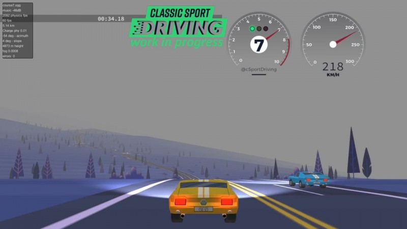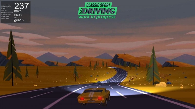 В Classic Sport Driving можно соревноваться с друзьями. Для этого нужно передать код товарищу, и он присоединится к гонке. Локации и авто выполнены в графическом стиле. Трассы не огорожены заборами, но срезать через луг невозможно. Каждые 100 метров на дороге встречается белая арка – контрольная точка. Если не проехать сквозь нее, водитель проигрывает. Заезды происходят как в дневное, так и в ночное время суток. Ночью освещать трассу помогают фары. Другие локации – пригород американского мегаполиса, горная северная местность, пустыня. В верхней части экрана можно следить за временем, позицией в гонке и скоростью.