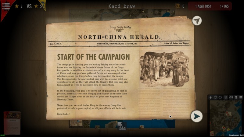 Как лидер повстанцев тайпинов, ваша конечная цель - создать мощное государство в самом сердце Китая, сокрушить династию Цин и стать новым правителем. Но для достижения этой цели потребуется тщательное планирование, координация и быстрое принятие решений. Сможете ли вы объединить свои силы, подтолкнуть другие восстания и нанести внезапные удары по своим врагам? Время идет, и вы должны действовать быстро. С другой стороны, как император Цин, вы должны быть бдительны и серьезно относиться к восстанию. Вы должны обучить новые войска, приобрести лучшее оружие и нанять правильных лидеров, чтобы защитить свою империю. Но берегитесь, враг безжалостен и коварен, и он не остановится ни перед чем, чтобы уничтожить вас. Вы должны быть стратегическим, решительным и действовать быстро, чтобы предотвратить их продвижение.